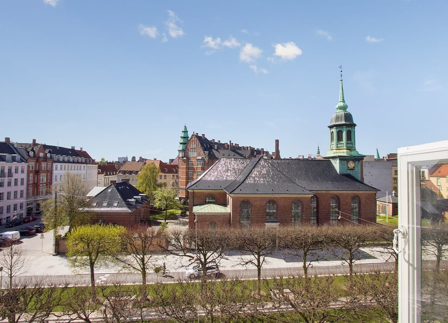 Lejligheden oser af klassisk charme. Her mødes du af tre stuer en suite, fyldt med smukke, originale detaljer – lakerede trægulve, høje paneler og majestætisk loftshøjde, der giver plads til prismelysekroner og overdådige middage. I forlængelse af stuerne finder du et stemningsfuldt herreværelse med pejs, hvorfra der er adgang til et privat gæsteværelse med egen indgang. Fra vinduerne får du et betagende vue over Nyhavns kanaler og Garnisons Kirkes imponerende spir.
