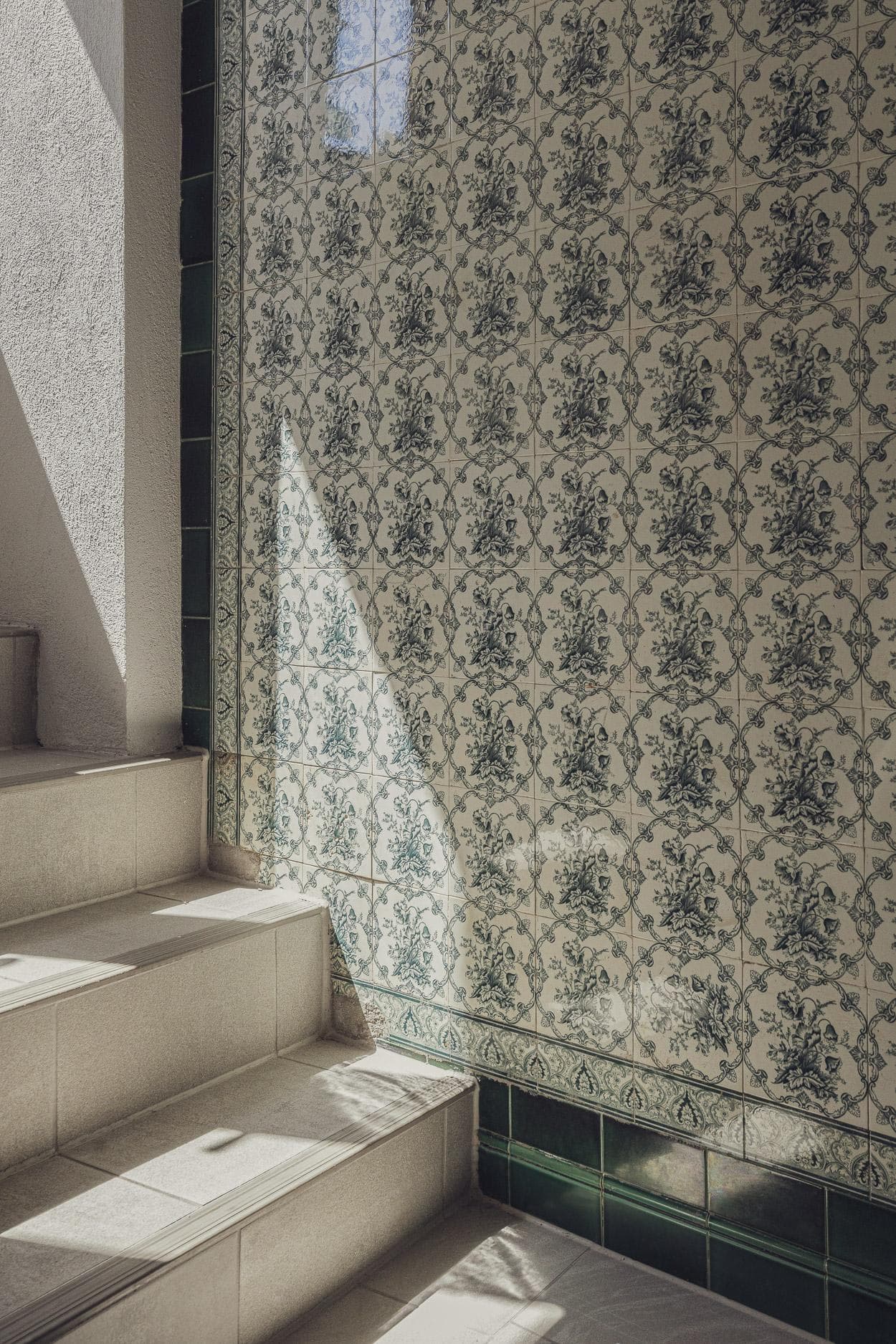 • original erhaltene, grüne Kacheln und sowie original Türrahmen und Türblätter