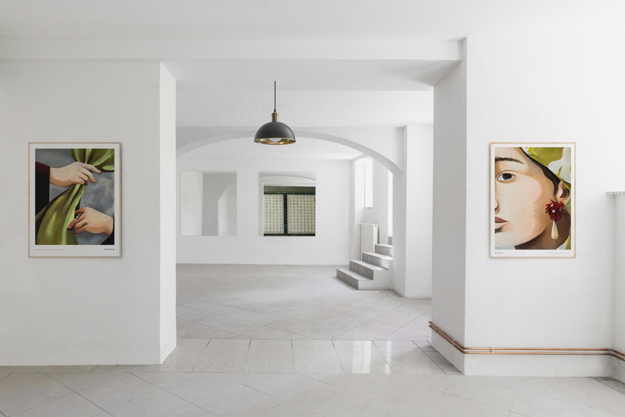 Gestalterisches Highlight sind die original erhaltenen, grünen Kacheln gepaart mit grauen Fliesen. Diese erinnern an das historische Ambiente, was auch die teils erhaltenen alten Türrahmen und Türblätter dokumentieren. Bei der Renovierung wurde alles in Weiß/Grau gehalten, wodurch eine Großräumigkeit und Großzügigkeit erzielt wurde. Der robust gehaltene Fliesenboden erlaubt eine vielfältige Nutzung.