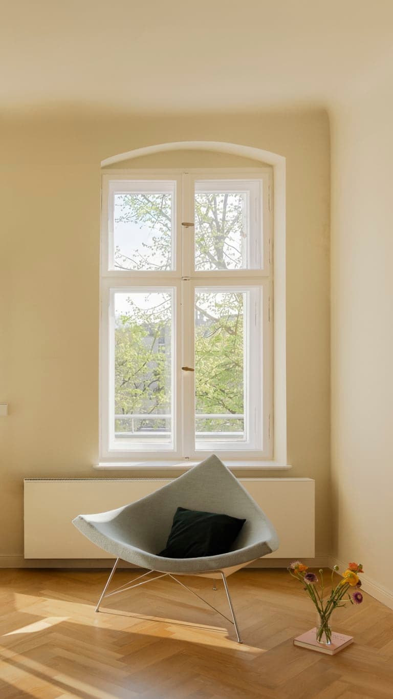 Die Wohnung in der Görschstraße folgt einer klaren, klassischen Grundrissstruktur mit zentralem Flur und einer ruhigen, selbstverständlich wirkenden Raumabfolge. Das Wohnzimmer öffnet sich zur Straßenseite und wird durch raumhohe Flügeltüren geprägt, die auf den großen Südbalkon führen. Durch die Südausrichtung ist die Wohnung den ganzen Tag über sehr hell, während im Sommer durch die Balkontüren in beiden Zimmern eine angenehm luftige, fast mediterrane Atmosphäre entsteht.