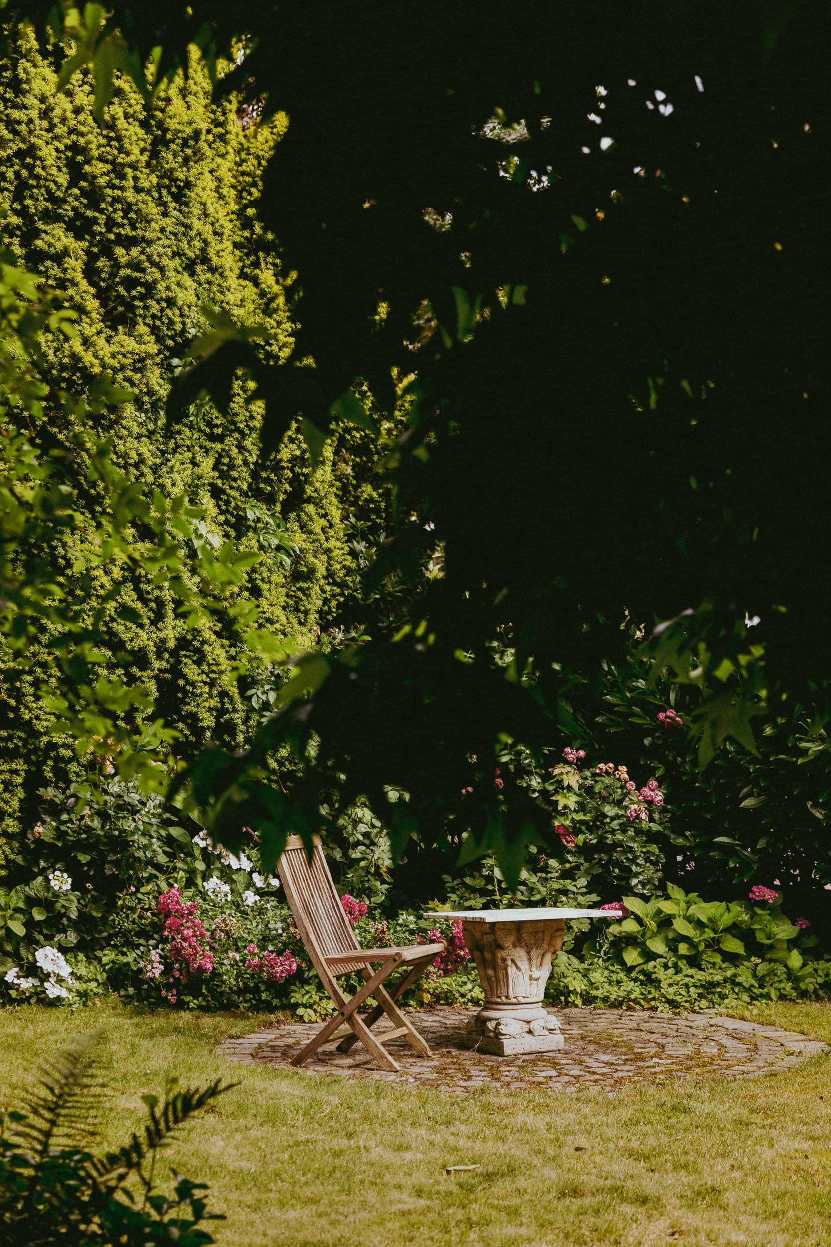 Im hinteren Teil der Villa gelangt man über eine Veranda im Wohnzimmer in den wunderschön angelegten Garten. Dieser wurde aufgrund der leichten Neigung durch eine smarte Bepflanzung geteilt und mit einem kleinen Durchgang verbunden. Dieser Rahmen hat viele gemütliche Plätze zum essen, relaxen oder spielen entstehen lassen. Im hinteren Teil des Gartens steht ein Spielhäuschen. Hier ist man umgeben von anderen eingewachsenen Gärten, mitten in der Natur.