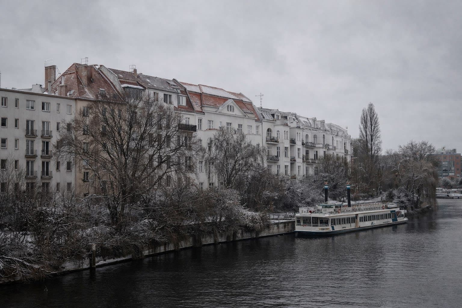 High above the treetops, almost opposite the Bundeskanzleramt, this light filled Altbau apartment on the fourth floor of a classic front building pairs preserved period details with a calm contemporary aesthetic. Original wide plank wood floors and restored cassette doors frame a generous layout, while an open kitchen and dining area extend onto a seven square metre balcony with open sky views. A stone finished bathroom with bathtub and Steinberg fittings and a quiet bedroom overlooking greenery complete this distinctive Berlin residence, moments from the Hauptbahnhof.