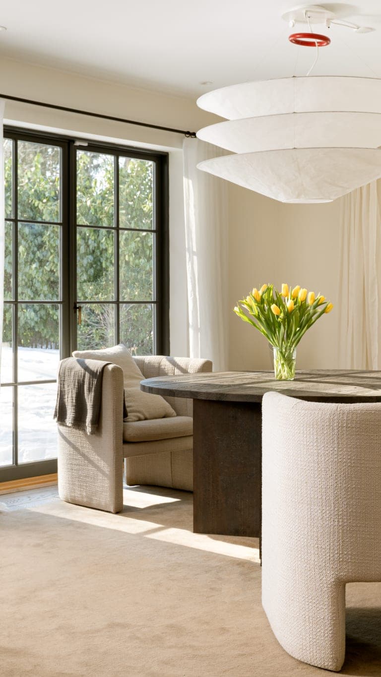 Inside, cool Nordic minimalism meets warm Eastern references in a harmonious fusion of colours, textures and surfaces. Underfloor heating throughout, a fireplace and a bathtub create an inviting atmosphere for year-round living - from long summer evenings on the terrace to quiet winter days by the fire.