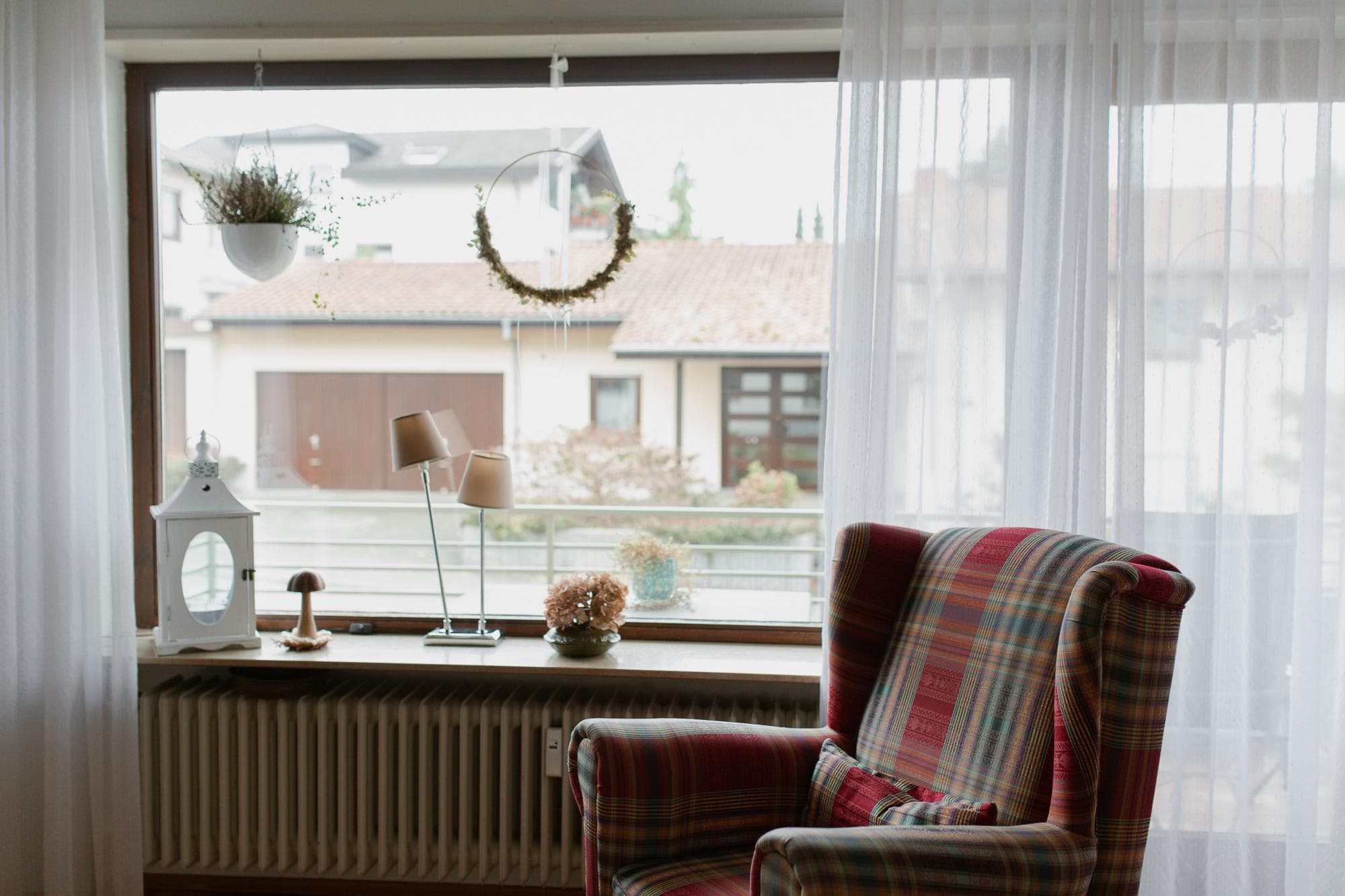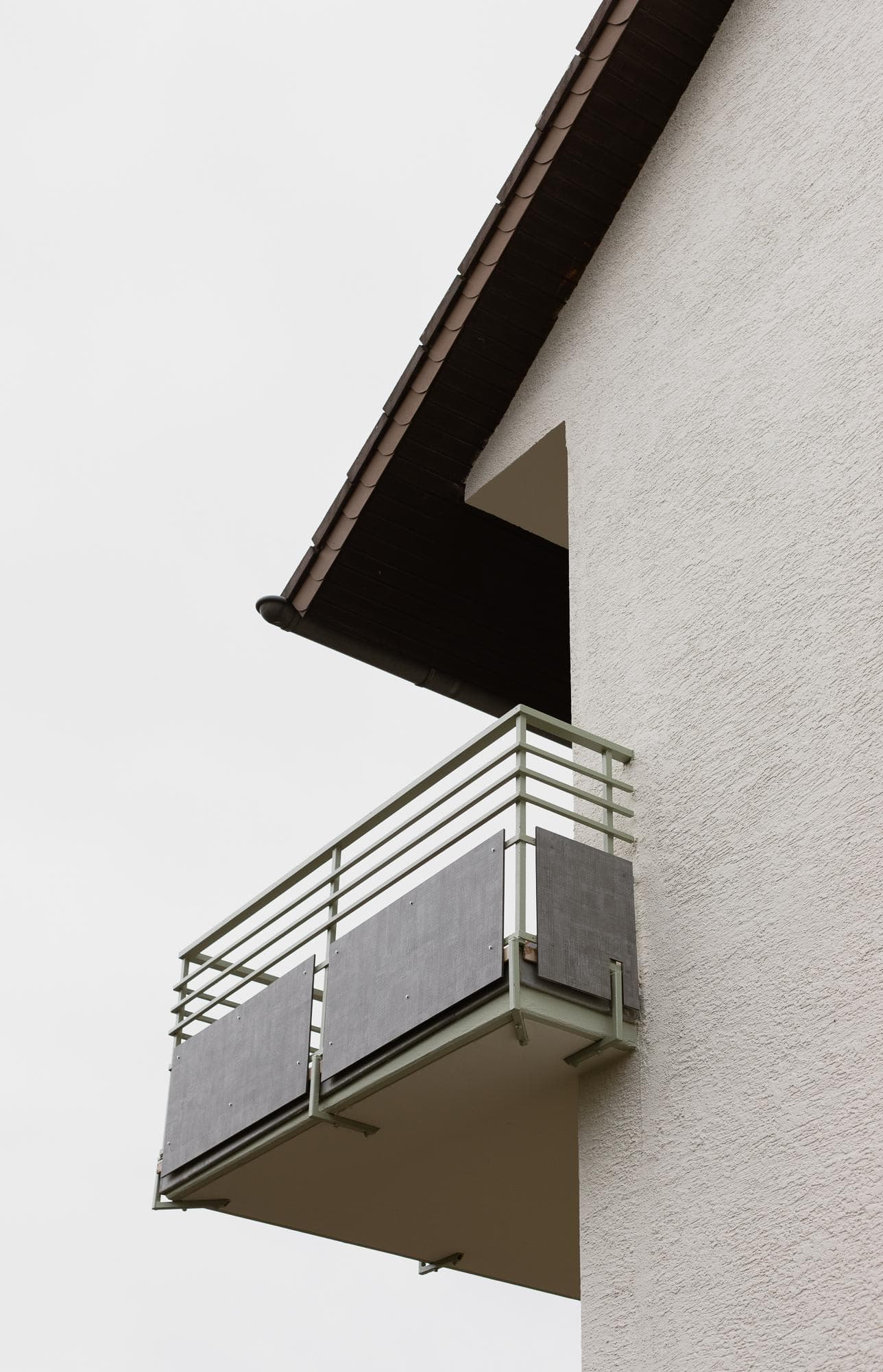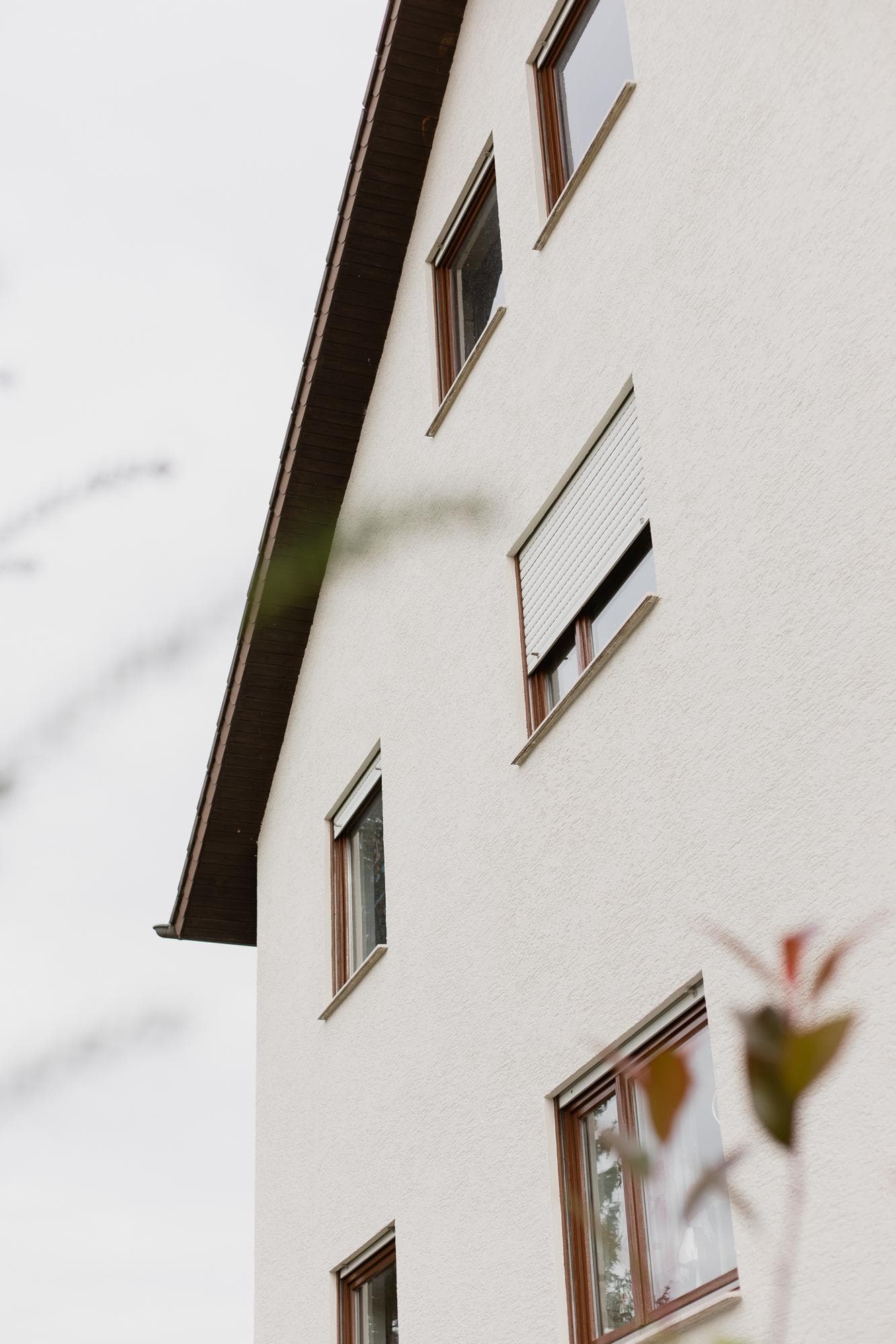 The apartment building dates from 1972, was built as a four-family house and two years later supplemented by another flat on the garden floor. has three garages and two parking spaces on the 604 m² plot. The south-facing balconies with anthracite-grey Trespa panels and pastel-green railings have a harmonious and natural look. The façade in an off-white tone gives the property a warm overall appearance. Calm and harmonious. The front garden is low-maintenance and very neatly laid out.