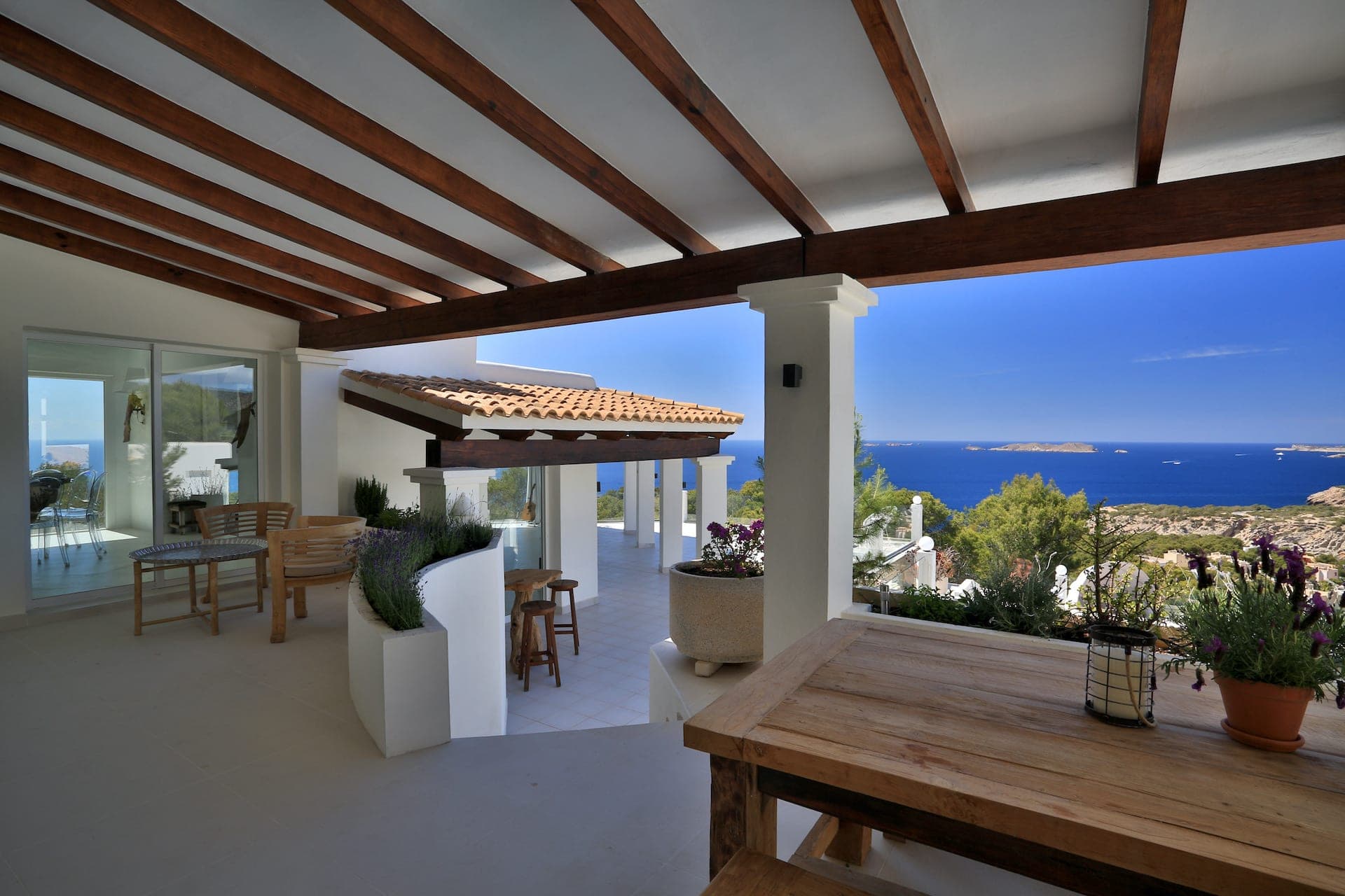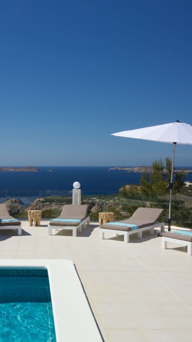 Cala Vadella sits on Ibiza’s south-west coast, known for its protected bay, clear water and consistent sunsets. The house is positioned above the bay, removed from immediate activity but within easy reach of the beach, restaurants and small-scale amenities.