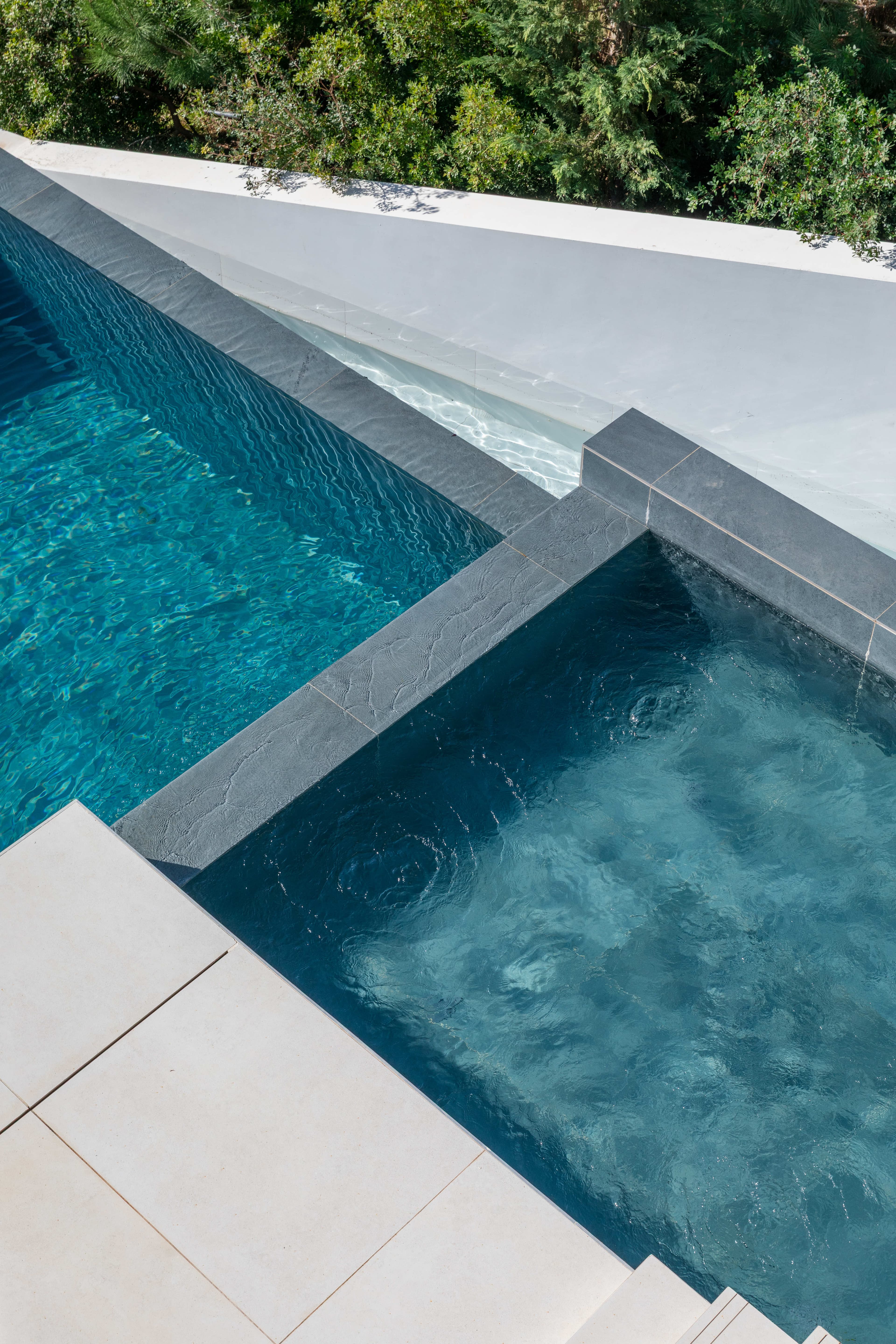 Perfect for outdoor living with terraces wrap the façade, offering shaded dining, open sun decks and evening lounge areas. The infinity pool visually extends into the hillside and towards the sea. Landscaping is simple and controlled, complementing the natural setting.