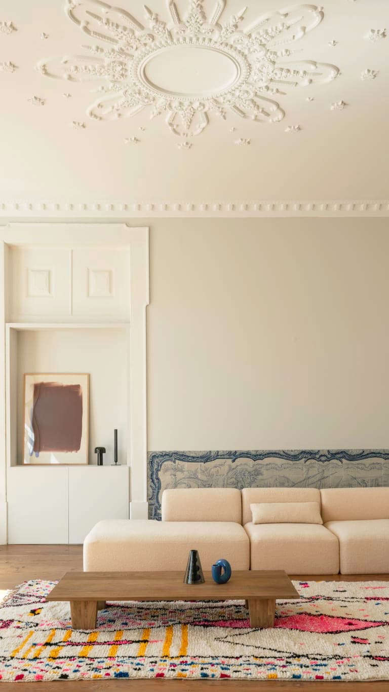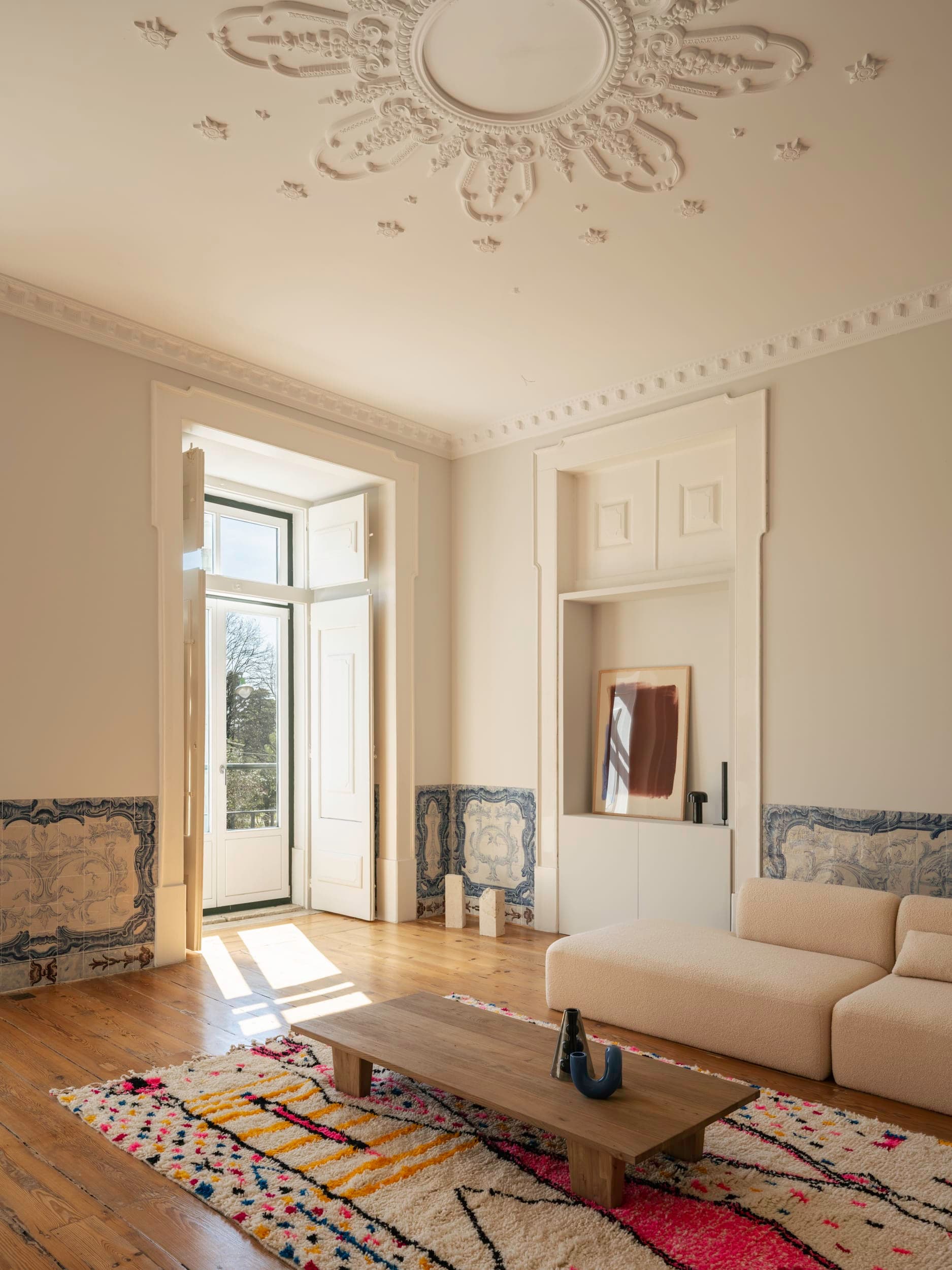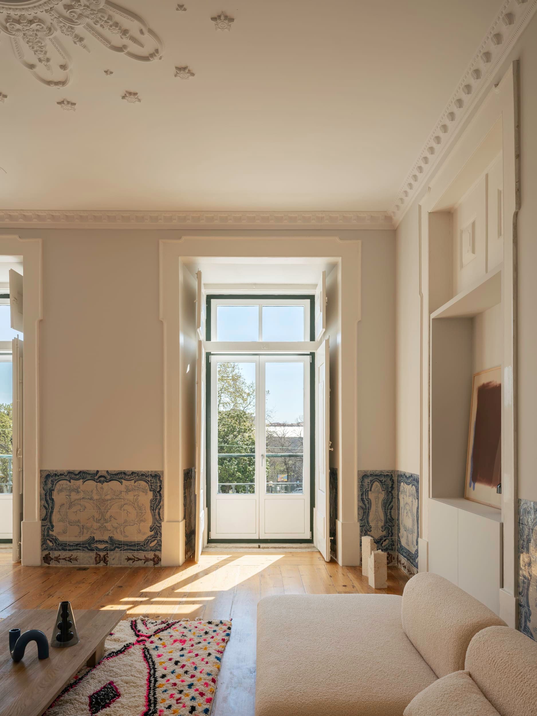 The Portuguese tiles appear across different rooms, adding historical depth to the interior. The building was fully renovated in 2015, including structural improvements and the addition of a lift. The apartment includes two private garage parking spaces, with the possibility to install EV charging, as already implemented by other residents in the building.
