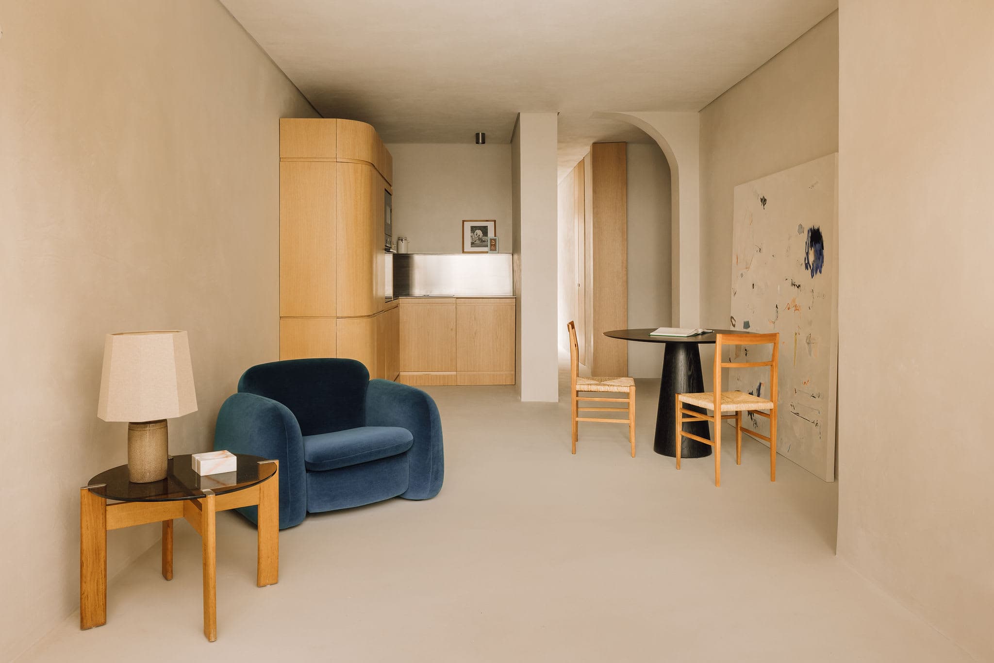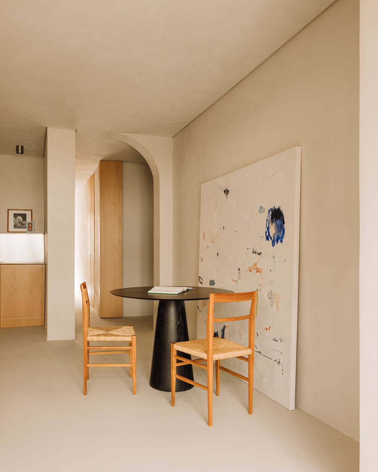 This one-bedroom apartment in Santa Isabel has been recently redesigned with a clear architectural approach. Originally built in 1962, the renovation reorganised the layout and introduced a calm palette of oak, microcement and stainless steel, creating a cohesive material language throughout the home. Soft organic curves appear in the kitchen cabinetry, the corridor arches and the planted beds on the terrace, reinforcing the quiet unity of the project. Set on the edge of Campo de Ourique, one of Lisbon’s most dynamic residential neighbourhoods, the apartment combines thoughtful design with the ease of daily life, with cafés, shops and services all within walking distance.