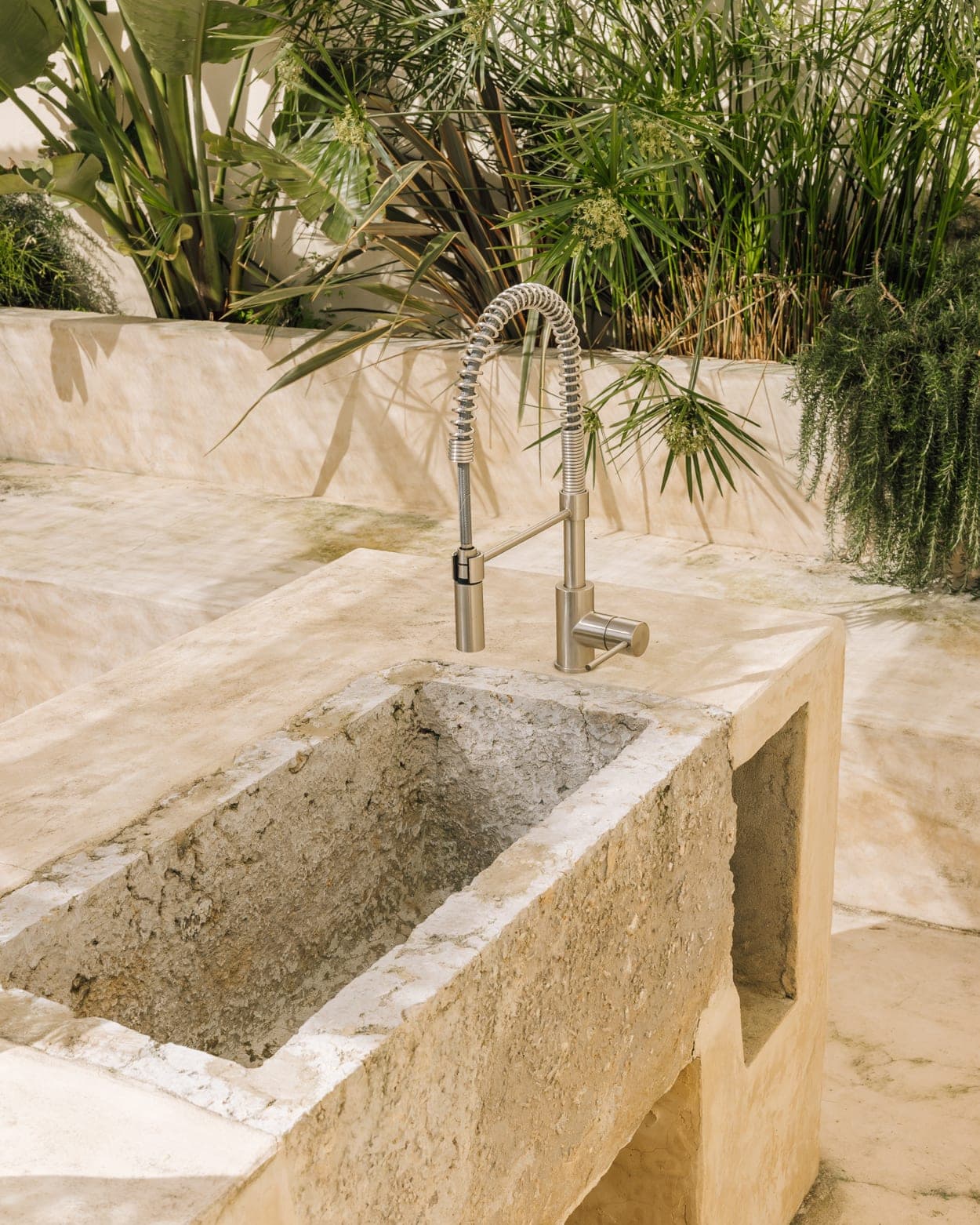 The outdoor space defines the experience of the property. A heated saltwater swimming pool sits within a landscaped garden designed for long days outside. The barbecue kitchen includes a natural stone sink and sits beneath tensioned shade nets that filter sunlight and create shifting patterns of shadow throughout the day. Three annex structures support the house with pool technical space, laundry, storage and an additional exterior bathroom. Private parking includes provision for an electric vehicle charging station.