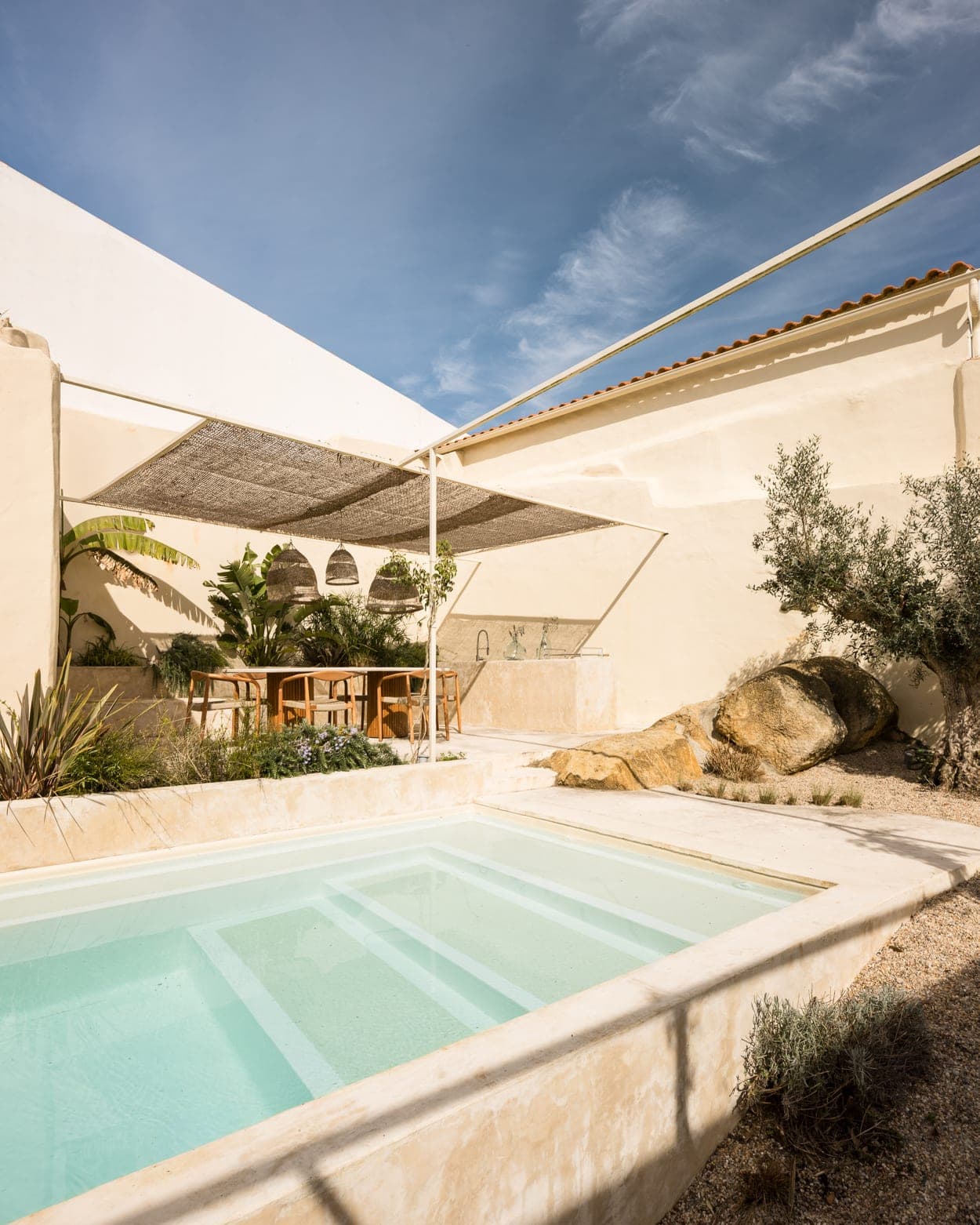Upstairs, two bedrooms and two bathrooms are arranged in a practical layout that comfortably accommodates two couples or guests. Skylights introduce additional daylight and reinforce the connection to the coastal environment. Fully completed in 2025, a project by Cave Office, combining wooden floors with microcement surfaces by Topeca and Moroccan zellige tiles in the outdoor areas. All-season climate comfort has been carefully addressed with underfloor heating, air conditioning for heating and cooling, and a heat pump system.