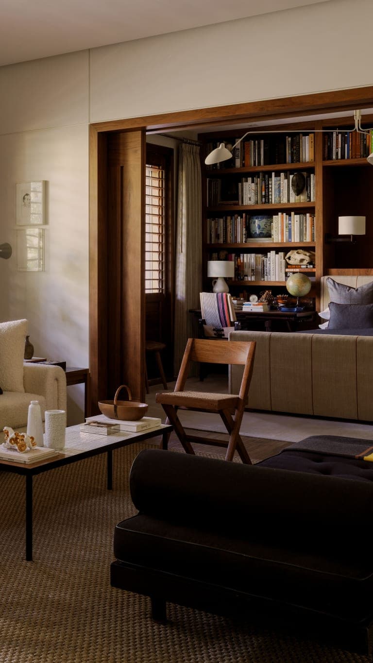 The residence presents itself as a sequence of calm, well-proportioned spaces. Two bedrooms and a flexible study are arranged around a generous living and dining area where spaces flow with ease. The kitchen is fitted with Boffi cabinetry and professional-grade Miele and Sub-Zero appliances, while bathrooms feature Carrara marble, Thomas Citterio fixtures for Hansgrohe, and Toto and Duravit sanitary ware. Loro Piana curtains and upholstery, along with custom wardrobes by Richard Wrightman, add layers of texture throughout.