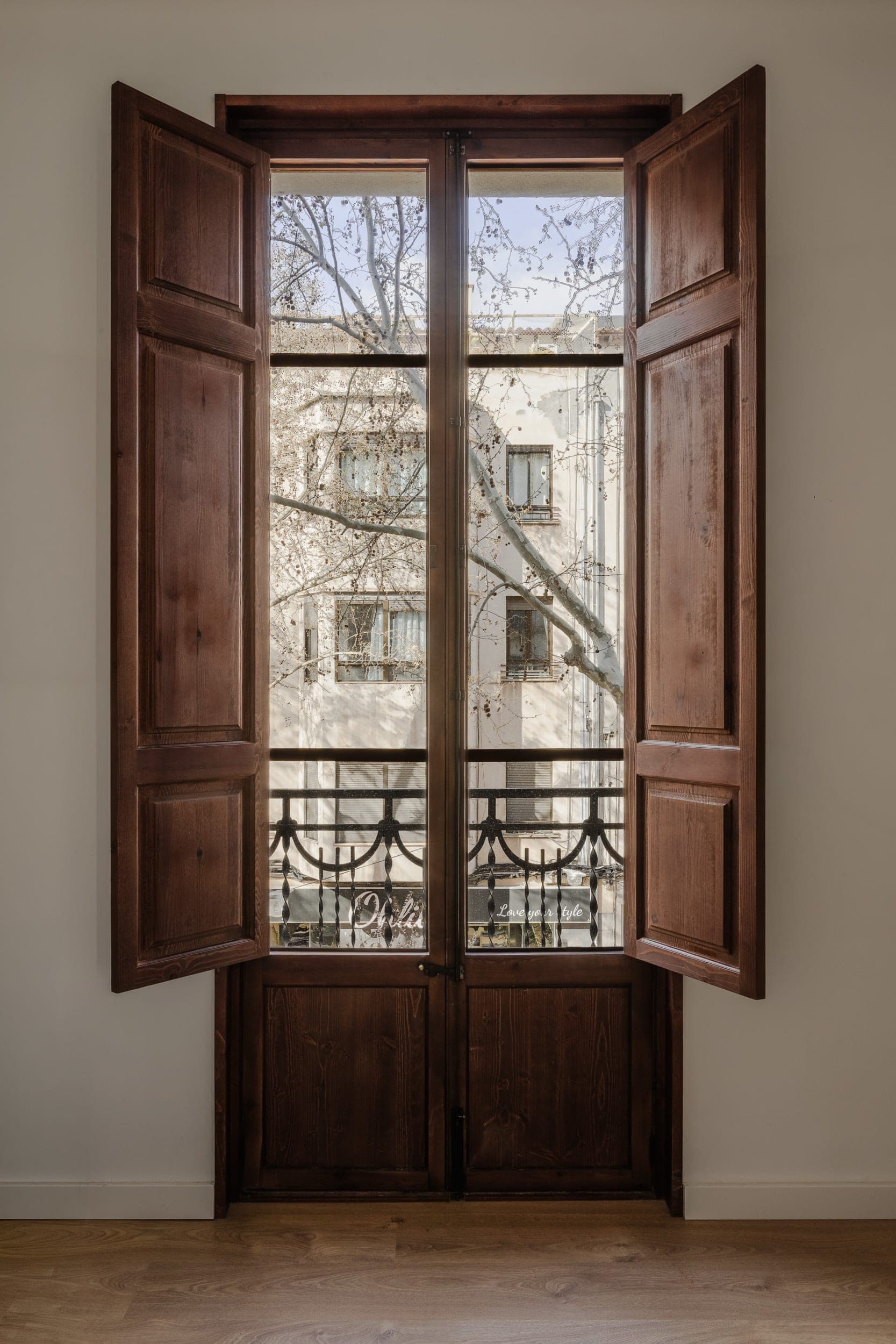 Tucked away on a quiet pedestrian street in Pere Garau, this beautifully renovated apartment is set within an elegant corner building originally built in 1935 and carefully restored in 2023. The 74 m² home combines historic character with a calm contemporary interior. Ceiling heights of around three metres, warm wooden floors and generous windows create a light filled atmosphere throughout, while elevator access and built in air conditioning for heating and cooling ensure everyday comfort.