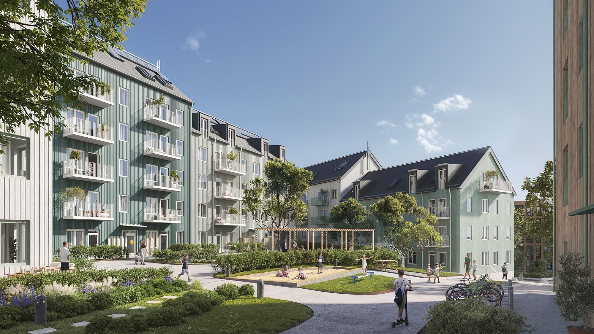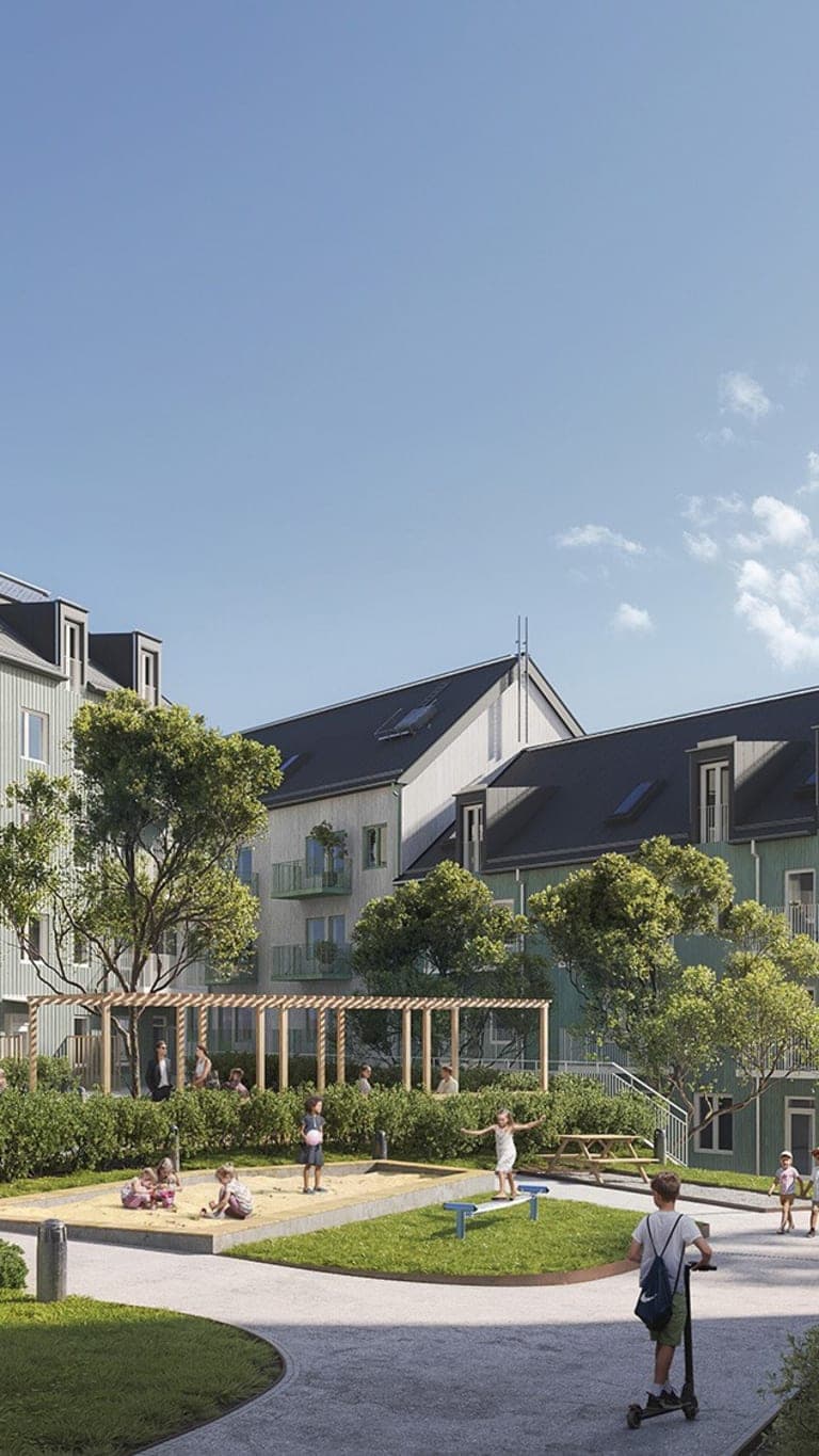 Villakänsla i stadskvarter! I Kvarter 7 på Nobelberget bor du som på landet – mitt i staden. Husen i trä ramar in en stor lummig innergård med lekfulla inslag och gröna oaser. Till kvarteret hör även en groventré med förvaringsskåp, för dig som gärna slipper träningskläder och blöta overaller i hallen.
