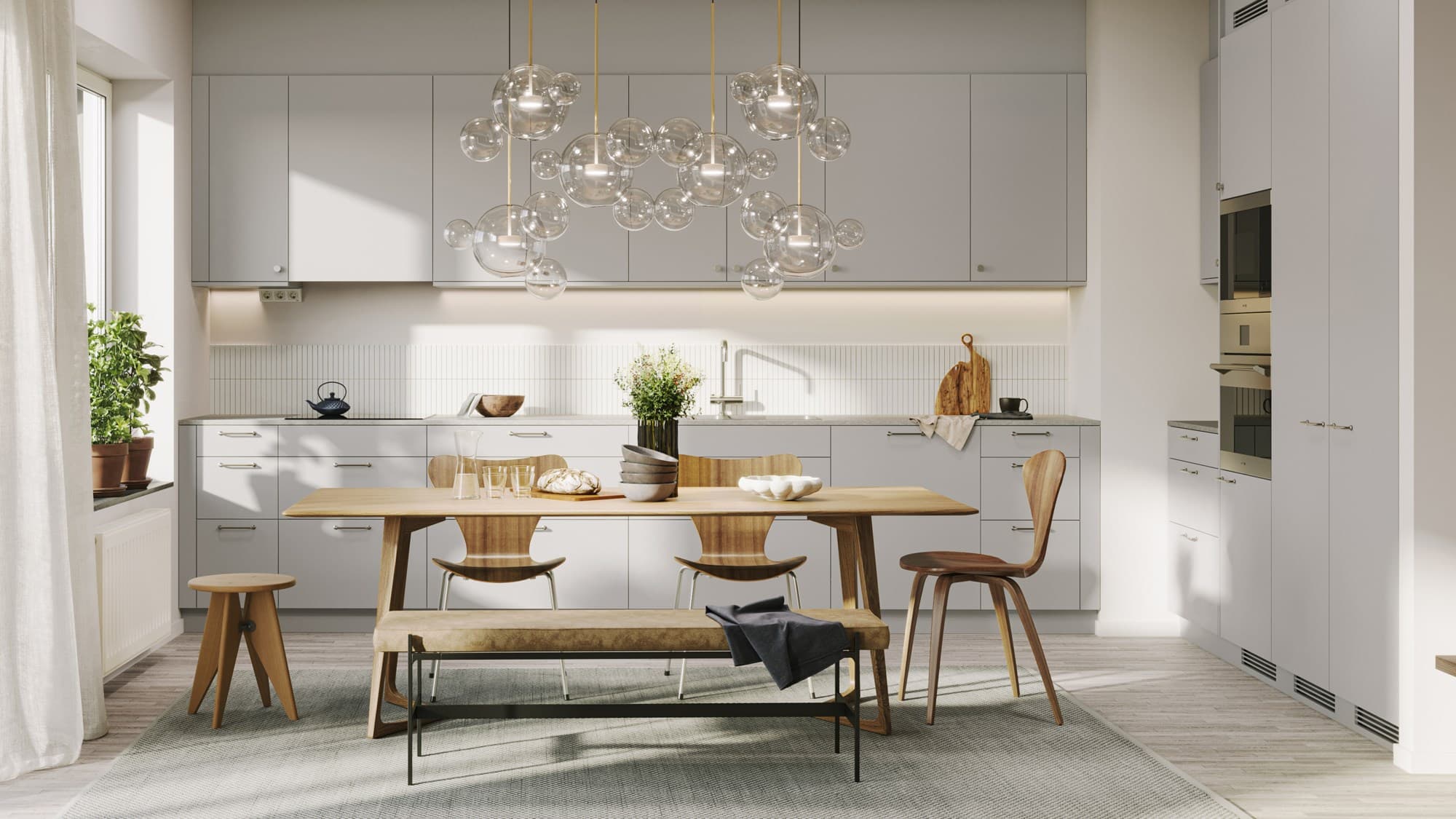 Lägenhetens genomtänkta inredning med ljus ekparkett och mjuk färgskala i gråa toner skapar ett harmoniskt intryck. Fina detaljer som kompositsten i köket och kolmårdsklinkers i badrummet ger karaktär.