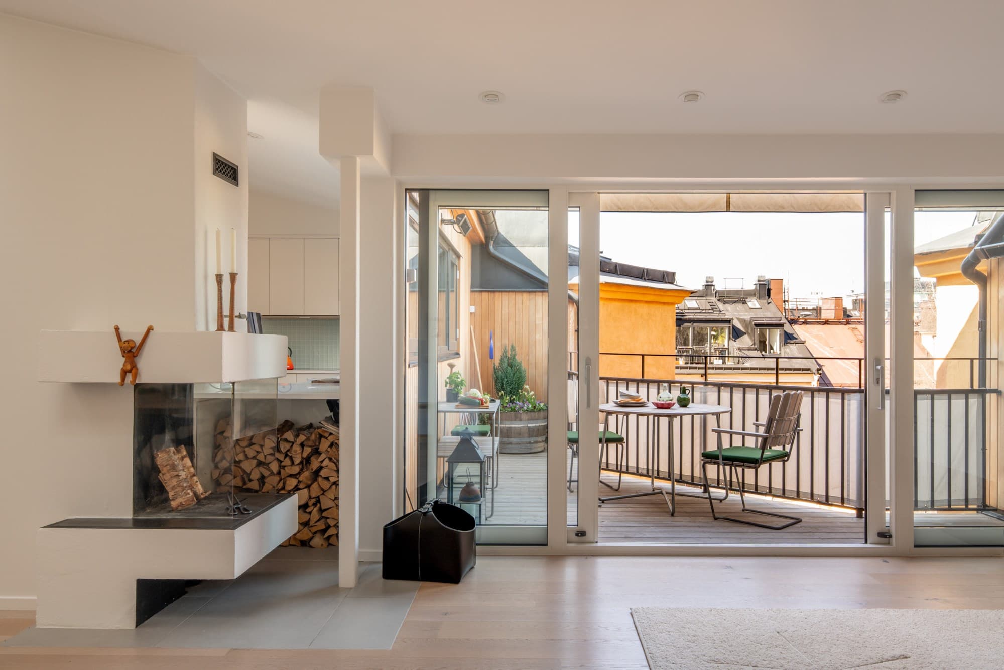 Välkomna till denna vindsvåning om totalt 127? kvm (118+??) i absoluta internationella toppklass med utsikt över himmel och takåsar. Bostaden är stilfullt renoverad där man sett till varje detalj och skapat en unik bostad. Väl tilltagen takterrass i soligt läge, två badrum, spatiösa sällskapsytor, öppen spis och högt till taknock är bara för att nämna några fördelar med denna bostad. Skötsam förening med god ekonomi och låga avgifter!