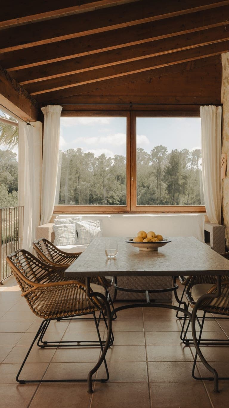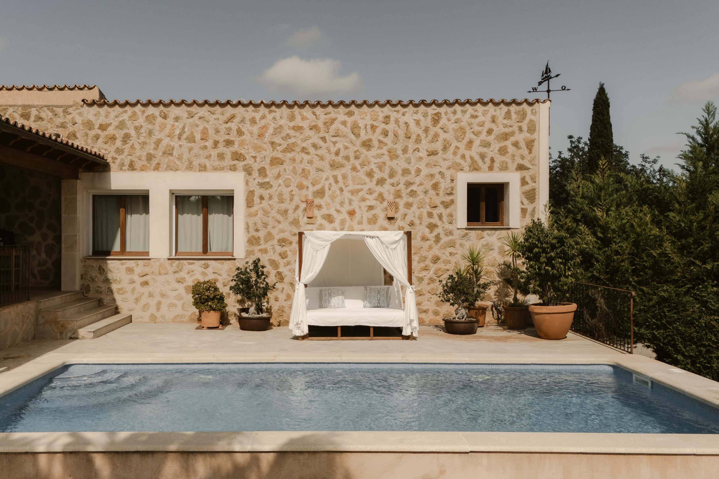 Son Roca, a las afueras de Sineu, combina la arquitectura mediterránea con la lógica serena de una finca rural en funcionamiento. Construida en 2010 y renovada técnicamente en 2022, la propiedad se define por una materialidad auténtica con piedra natural, vigas de madera vistas y suelos de terracota. Bomba de calor, sistema fotovoltaico y suelo radiante en toda la casa garantizan un confort contemporáneo dentro de un entorno sobrio y conectado con la naturaleza.