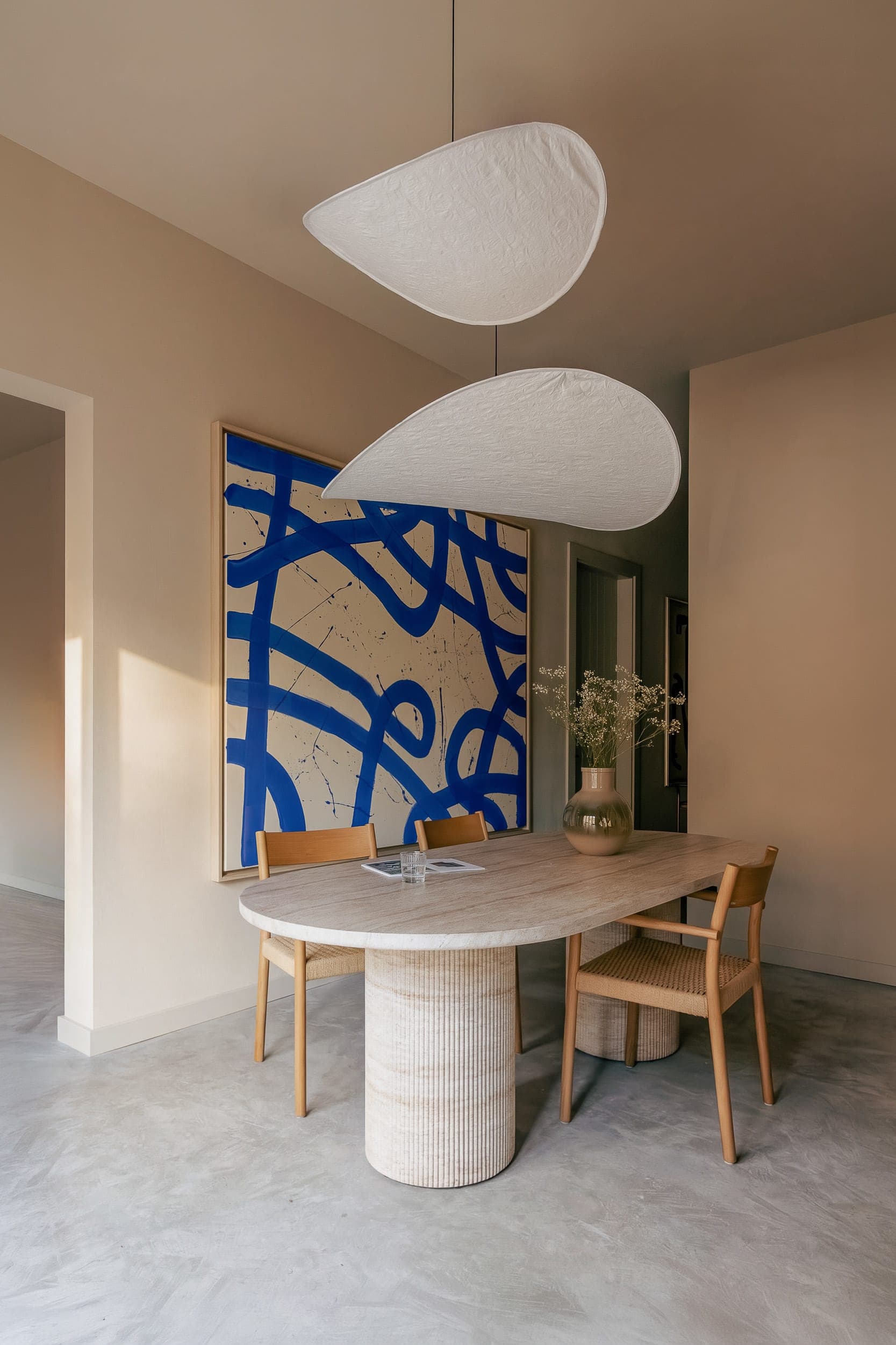 På de gröna och stillsamma gatorna i Son Armadams ligger denna omsorgsfullt omgestaltade femrummare som förenar medelhavsarkitekturens klarhet med ett precist, samtida uttryck. Bostaden upptar ett helt våningsplan och erbjuder terrasser och balkonger i tre väderstreck – öst, syd och väst – vilket skapar en ständig relation till ljuset. Lägenheten är belägen i en byggnad från 1942 och totalrenoverades 2026. Generösa takhöjder om 3,10 meter, sömlösa betonggolv och mineraliska väggar skapar en lugn och varm, nästan taktil atmosfär.
