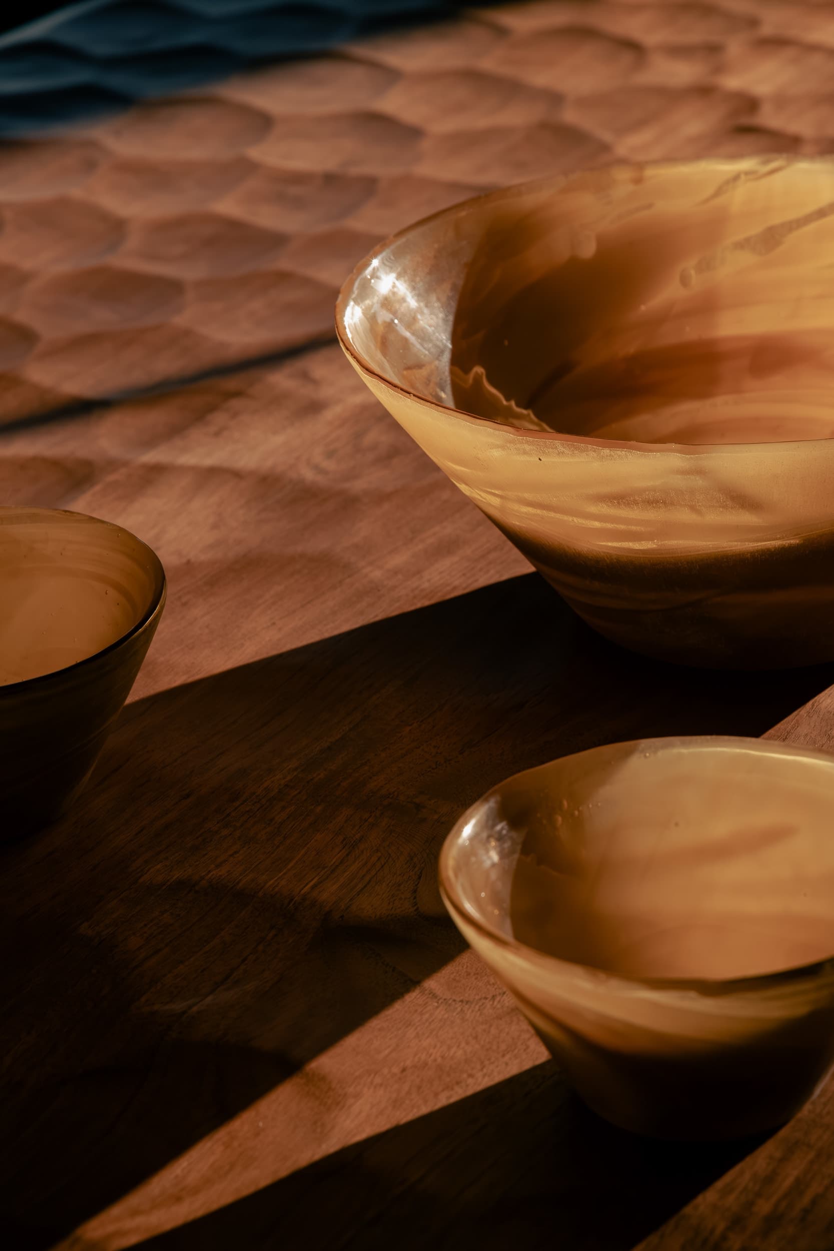 Vardagsrummet markeras av en öppen spis och struktureras genom integrerade hyllor och öppningar som skapar rymd utan att dela av. Generösa fönsterpartier släpper in rikligt med ljus och öppnar upp mot grönska och hav. Rummet fortsätter ut mot en cirka 25 m² stor, täckt terrass längs hela sydvästsidan som fungerar som ett utökat vardagsrum med vidsträckta vyer över pinjerna och Palmabukten.