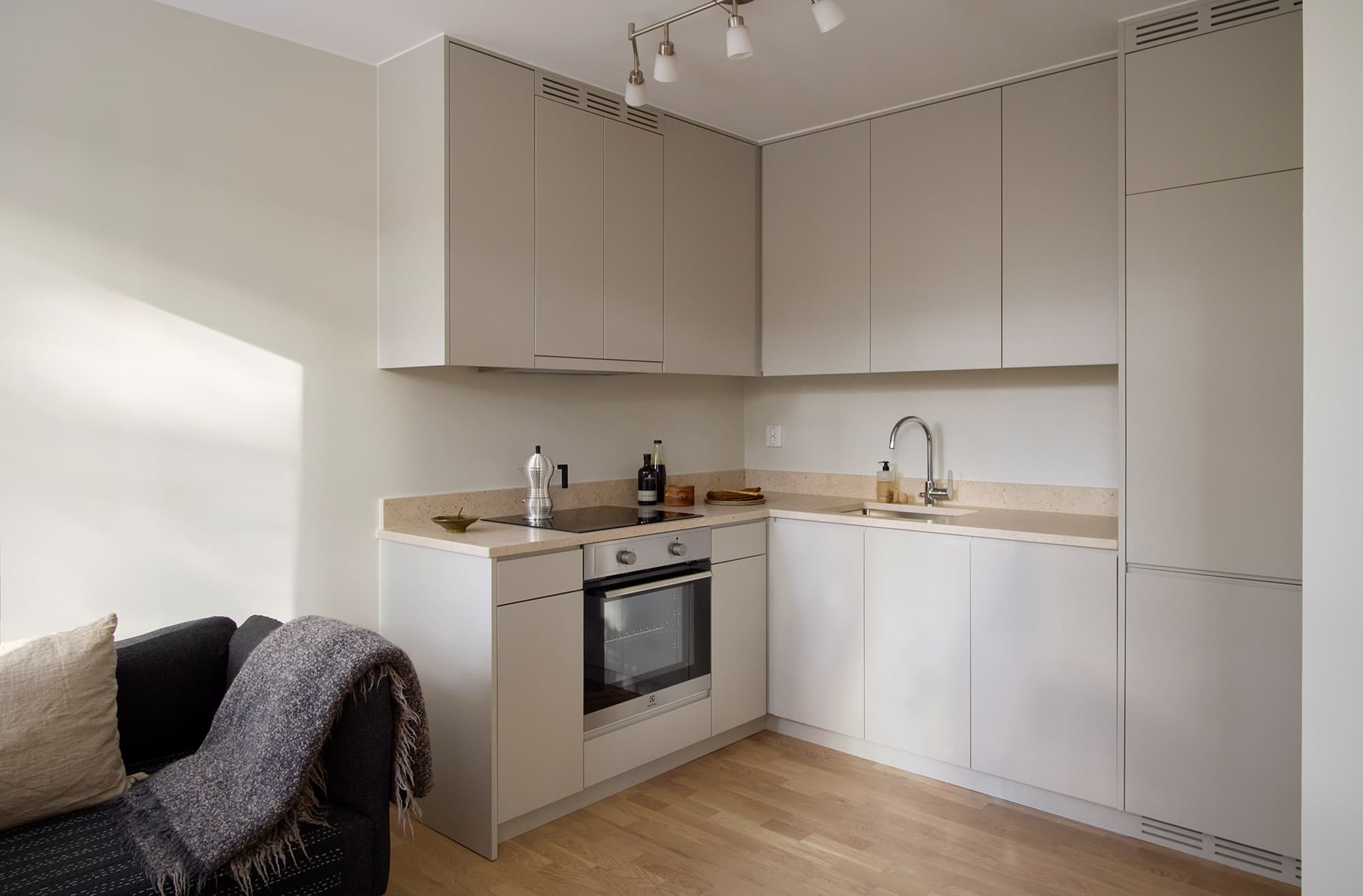 I en stabil förening med historia har en nyproducerad lägenhet vuxit fram – där modern funktion möter tidlös form. Lägenheten har renoverats med stor omsorg, där Unges Byggservice stått för både gestaltning och utförande. Resultatet är en genomtänkt helhet med välvalda material, lugna kulörer och integrerad förvaring som sömlöst smälter in i rummen.