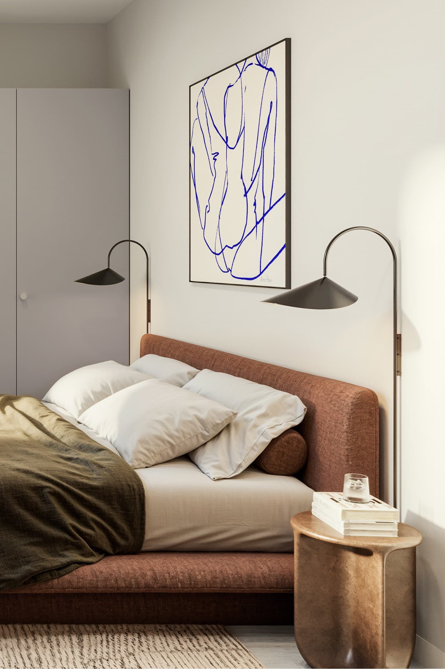 Lägenhetens genomtänkta inredning med ljus ekparkett och mjuk färgskala i gråa toner skapar ett harmoniskt intryck. Fina detaljer som kompositsten i köket och kolmårdsklinkers i badrummet ger karaktär.